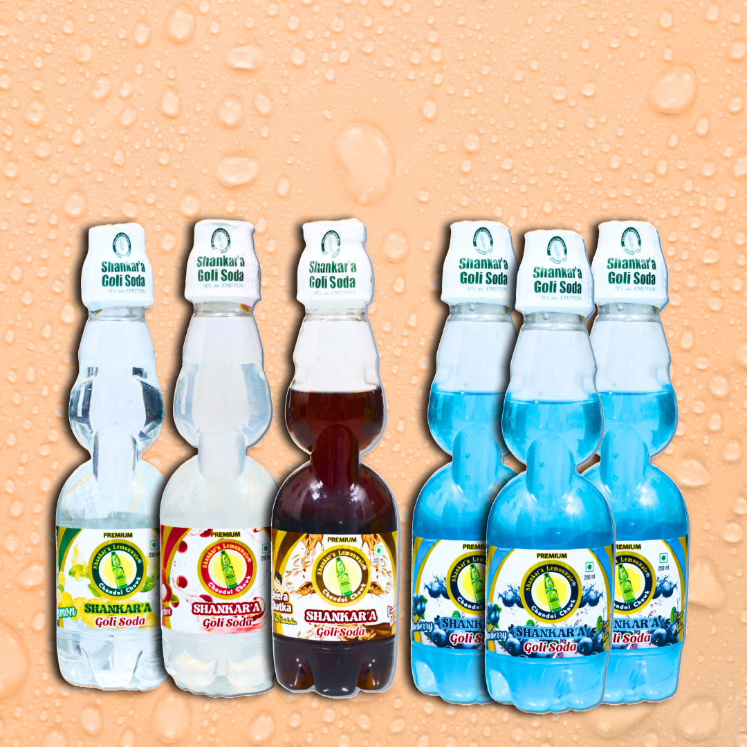 Shankar’a Goli Soda Assorted Pack of 6 (Lemon 1, Jeera Chatka 1, Lychee 1, Blueberry 3)