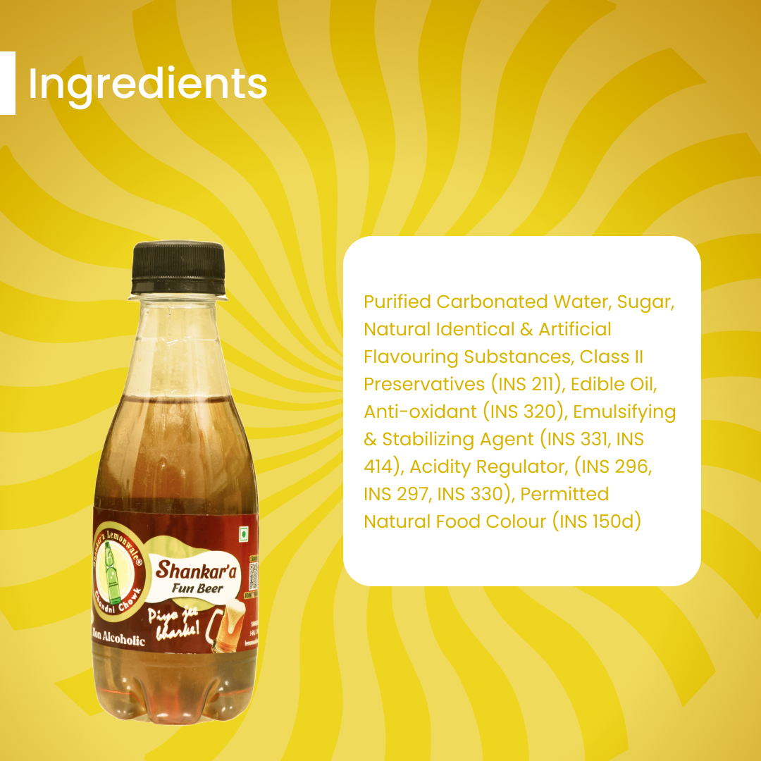 Experience the timeless magic of India’s favorite summer refresher with Shankar’a Funbeer Soda. Inspired by the original street-side funbeer soda, this fizzy drink brings back the joyful experience It’s sweet, tangy, and bursting with real funbeer flavor just like how it used to be at the corner stall.