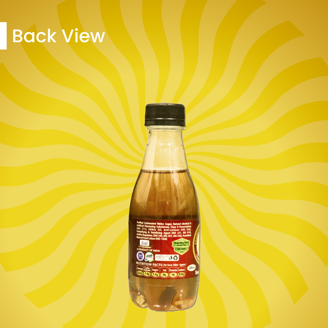Purified Carbonated Water, Sugar, Natural Identical & Artificial Flavouring Substances, Class II Preservatives (INS 211), Edible Oil, Anti-oxidant (INS 320), Emulsifying & Stabilizing Agent (INS 331, INS 414), Acidity Regulator, (INS 296, INS 297, INS 330), Permitted Natural Food Colour (INS 150d)