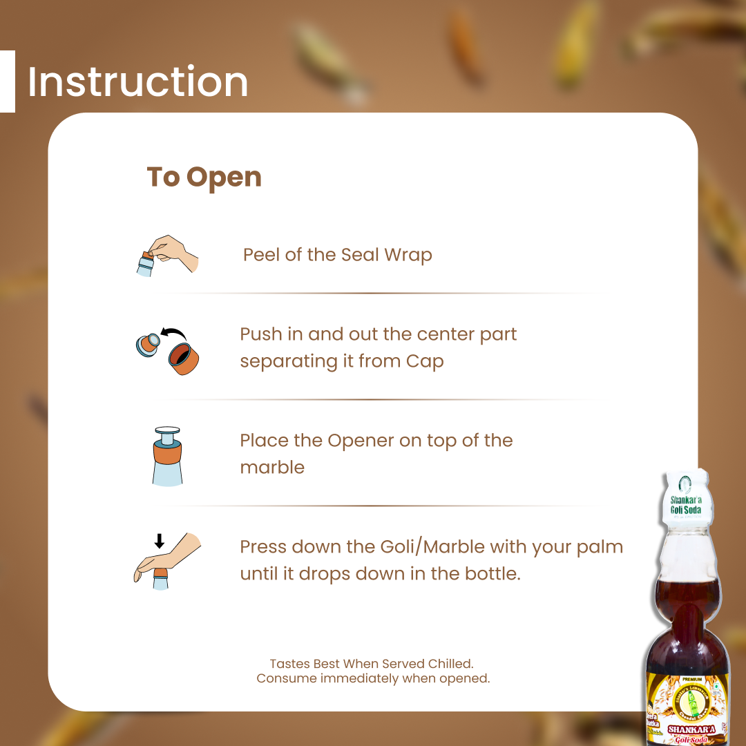 • Press down the Goli/Marbel with your palm until it drops down in the bottle.